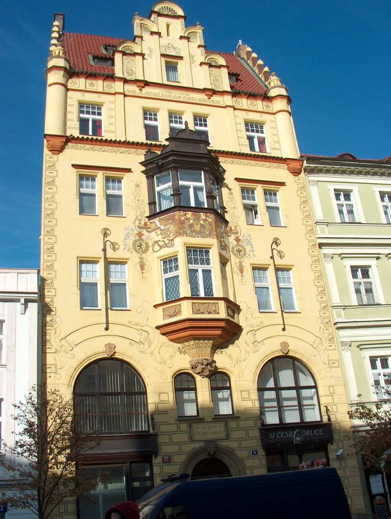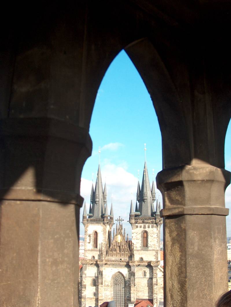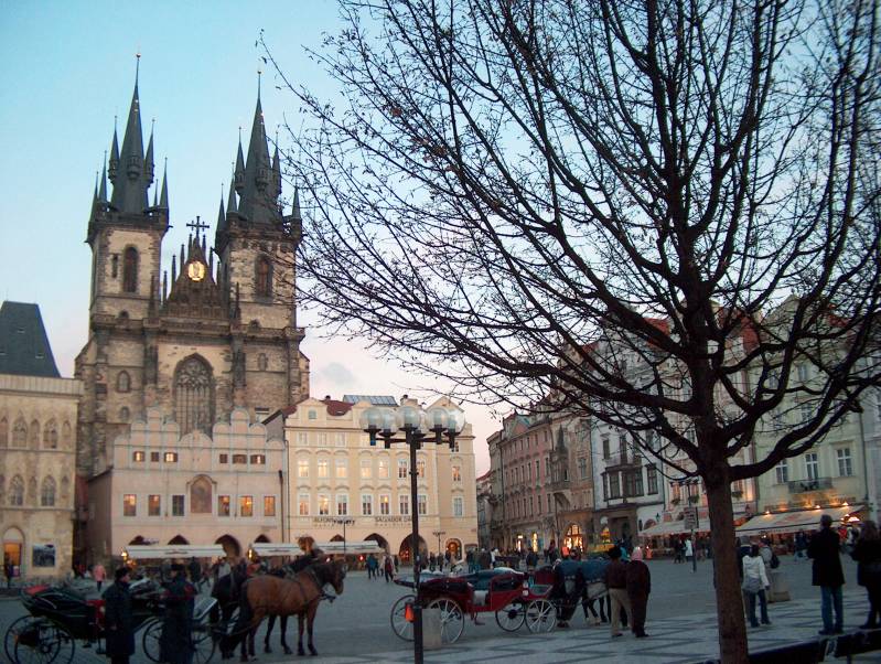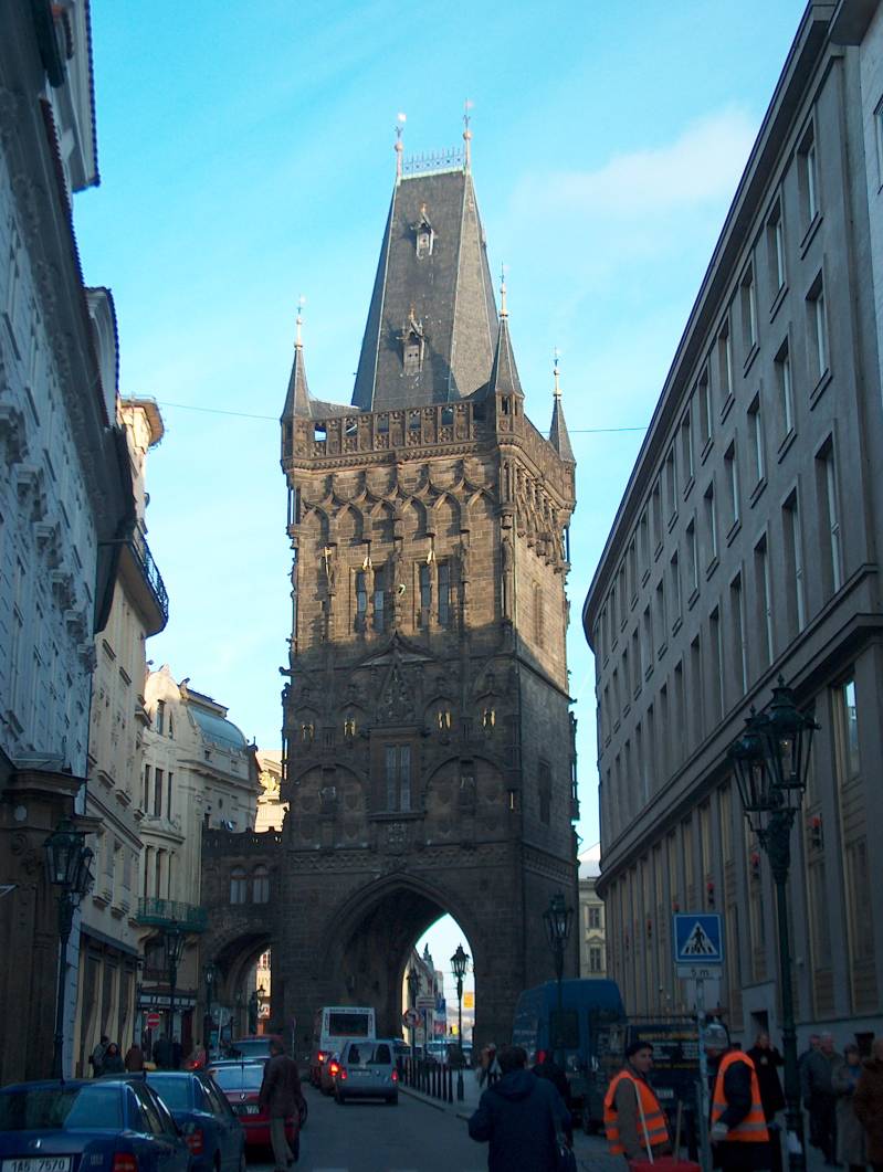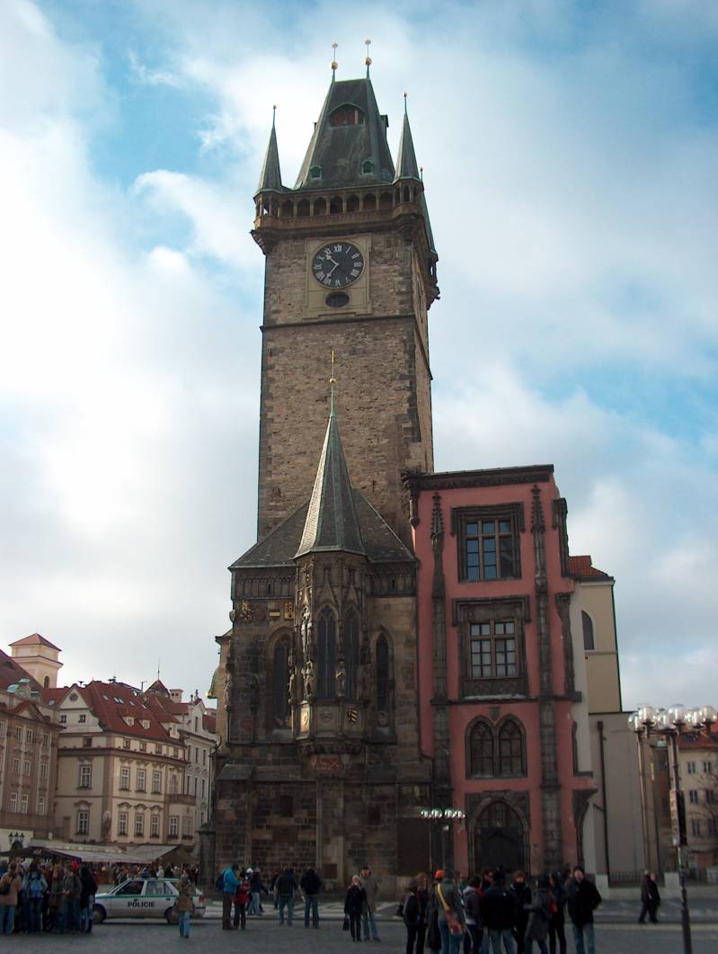 De stadhuistoren en het representatiehuis obecni dum, typisch gebouw in de Praagse Jugendstil en zetel van het Praagse filharmonisch orkest. Schilderijen, mozaiekwerk en sculpturen illustreren de Boheemse mythologie. Twee restaurants en het grootste artdecocafe van Praag bevinden zich onder hetzelfde dak. Aan het twee verdiepingen hoge plafond hangen reusachtige geelkoperen kroonluchters. Na een wandeling door de stad ga ik hier wat opwarmen met warme chocolademelk en rum. Die kost hier wel een flinke duit kronen, maar dan heb je ook wat!
