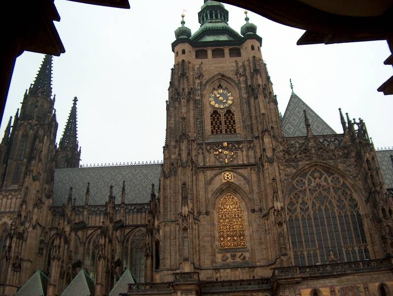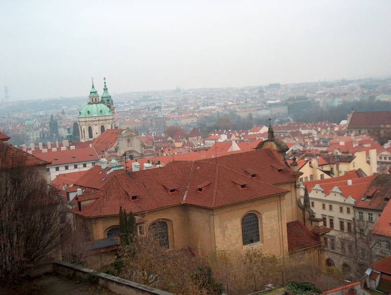 De burcht Hradsjin, hoog op een heuvel gelegen boven de Moldau. De kathedraal van St. Nicolaas