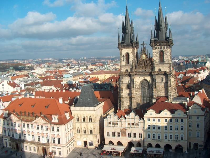 De Tynkerk (kostel Panny Marie pred Tynem) aan het plein van de oude stad.